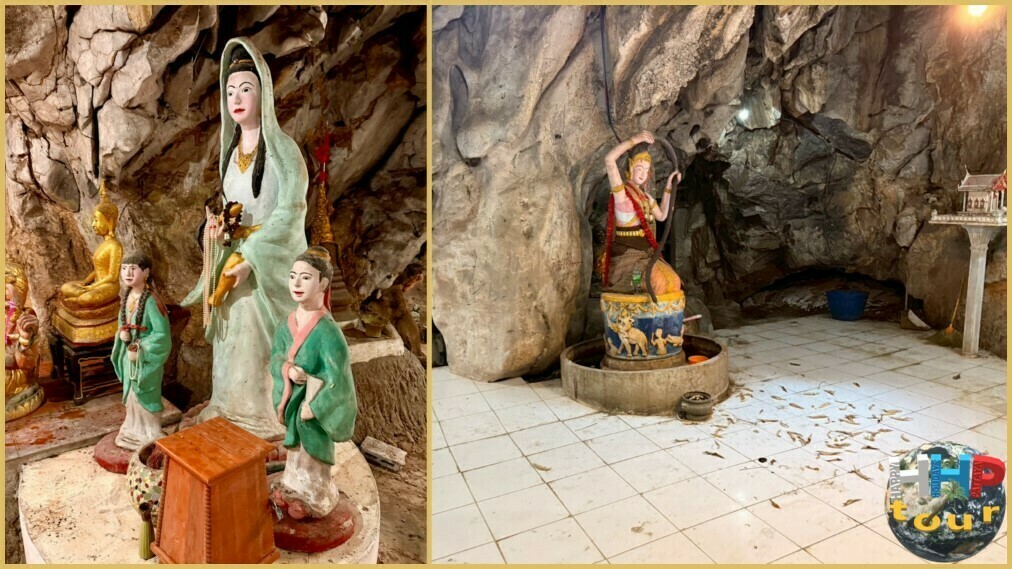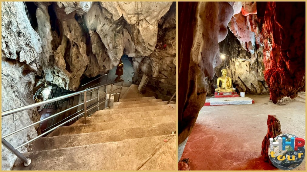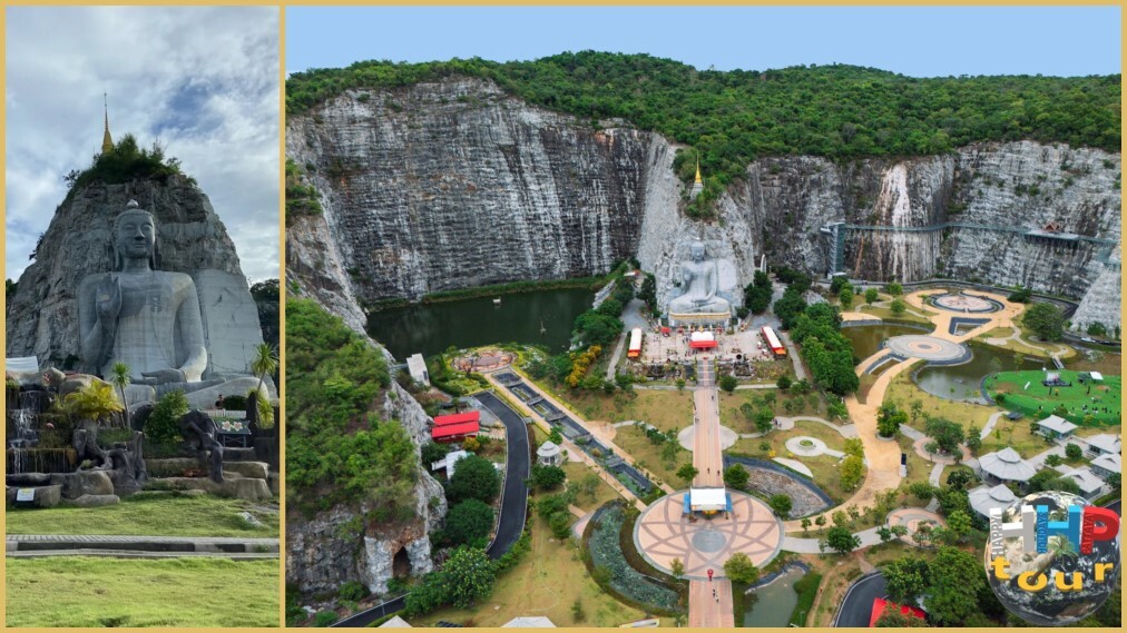Первой нашей остановкой станет поистине бесспорный плод человеческого труда и геологической удачи в храме Ват Кхао Тхам Тхиам, в провинции Супханбури. Здесь, среди величественных гор мастера создали настоящее чудо инженерной мысли и искусства. В самом сердце отвесной скалы было высечено огромное, внушающее величественностью изваяние Будды — самый впечатляющий элемент