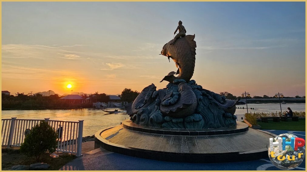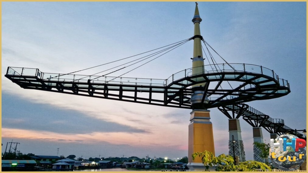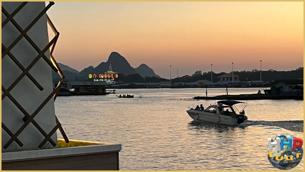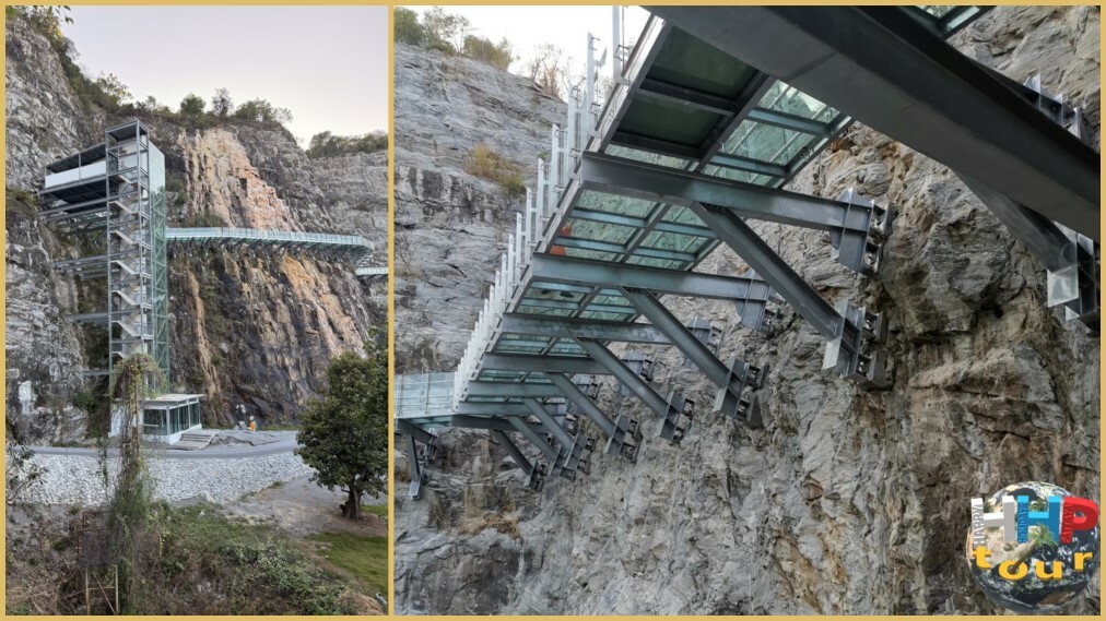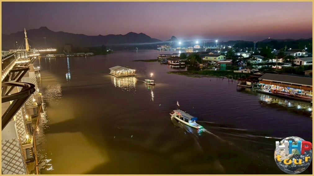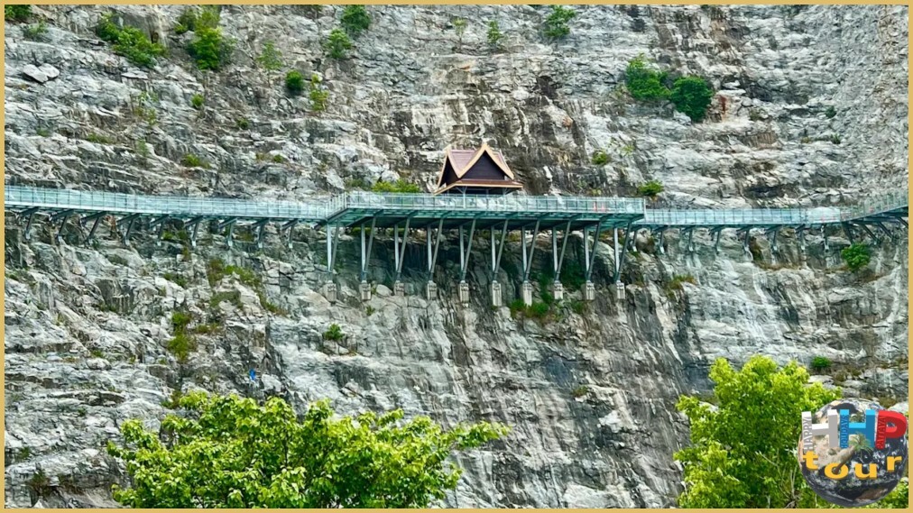 Завершающим аккордом станет остановка возле стеклянного моста высотой 12 метров, протянувшегося вдоль и над рекой на 150 метров. К концу дня чёткие переливы на спокойной воде создают идеальную картину уходящего солнца, утопающего в мерцающих пятнах реки Квай. Красота здешних мест захватывает и очаровывает одновременно. Куда ни глянь — прекрасно, а вечерняя подсветка конструкции придаёт ландшафту сказочное величие.