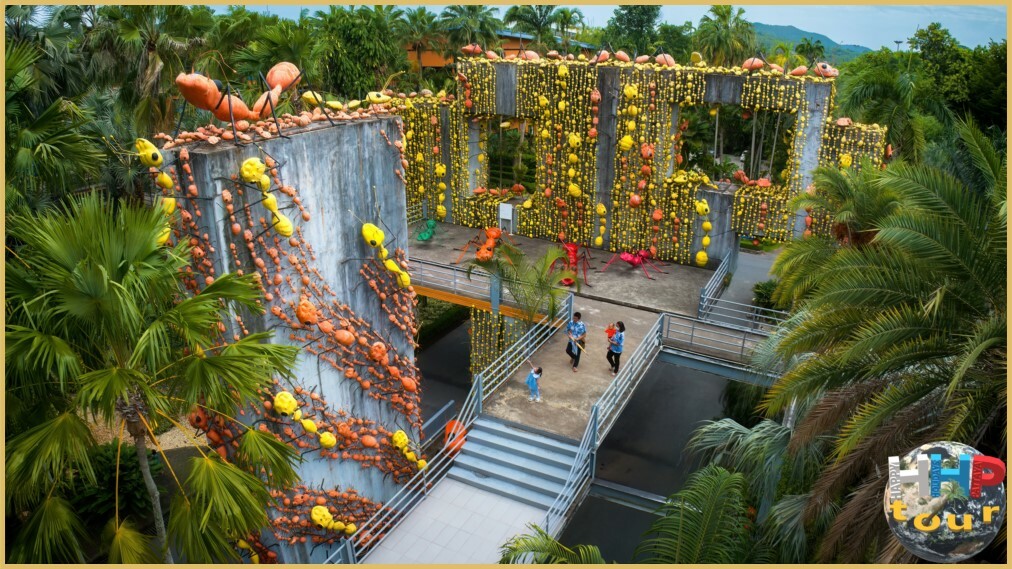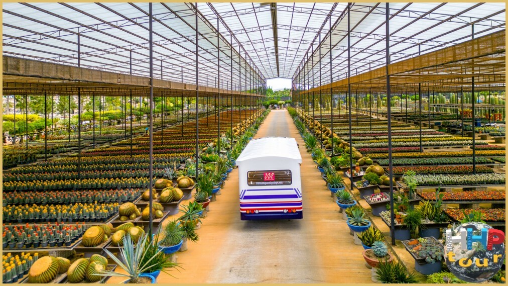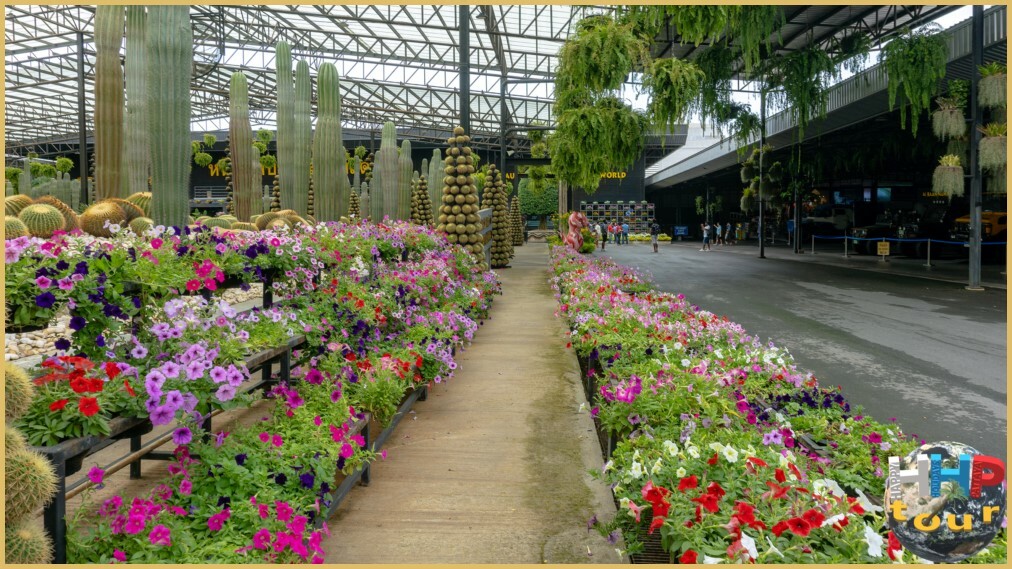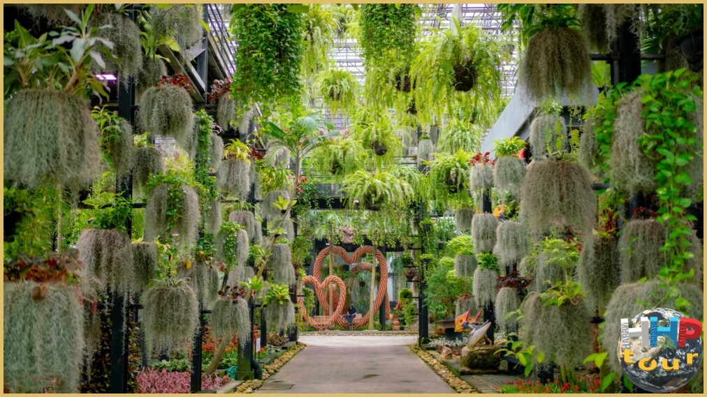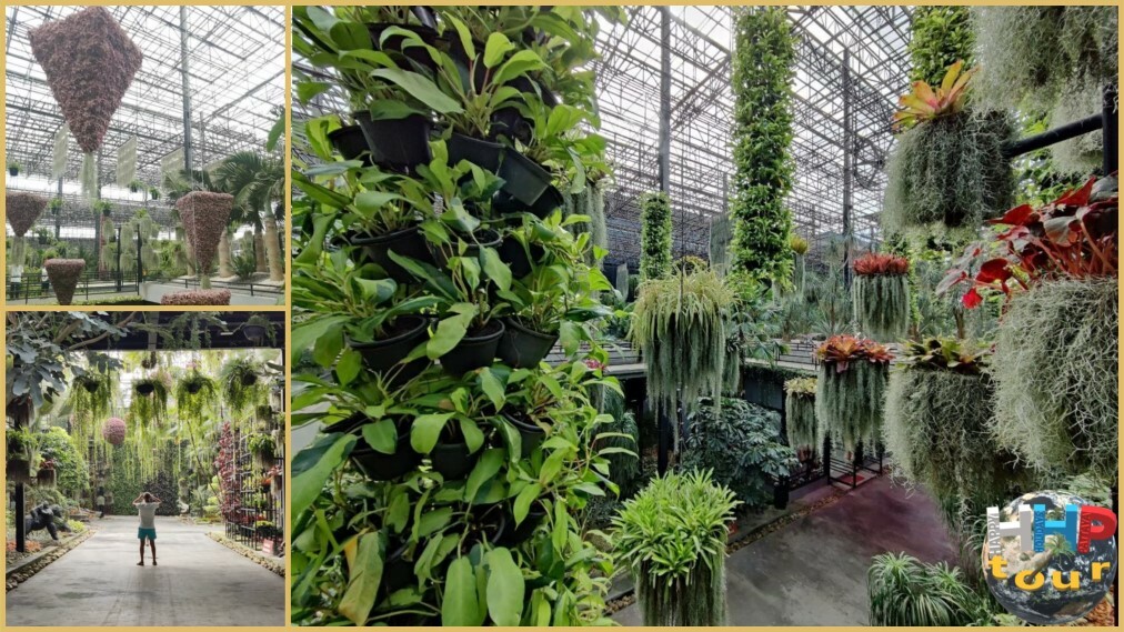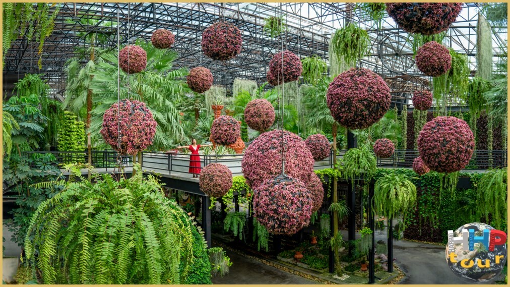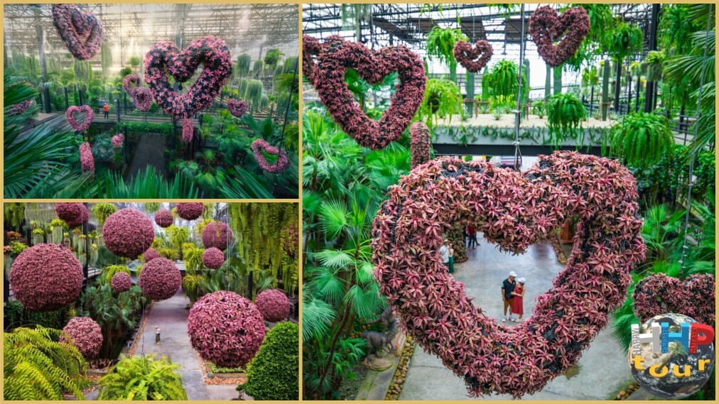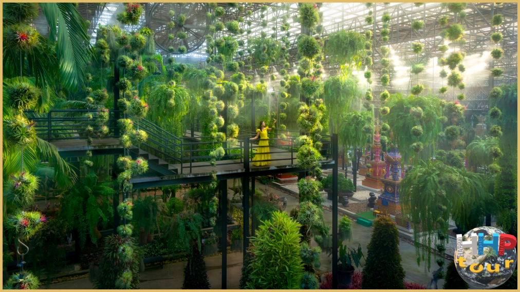 Сад регулярно обновляют, формируя живые композиции в виде сердец, шаров и звёзд, которые рассредоточены по всей территории. Дополнительно установлены фигурки динозавров, а также керамическая посуда, выполненная в необычных формах — в виде тук-тука, сердечка, куклы, арочных ворот. Оросительная система работает в режиме туманного опрыскивания, обеспечивая прохладную атмосферу круглый день. Для освещения используют светодиодные лампы, способствующие эффективному фотосинтезу растений.