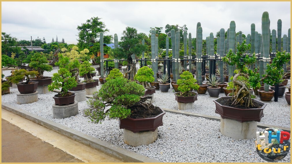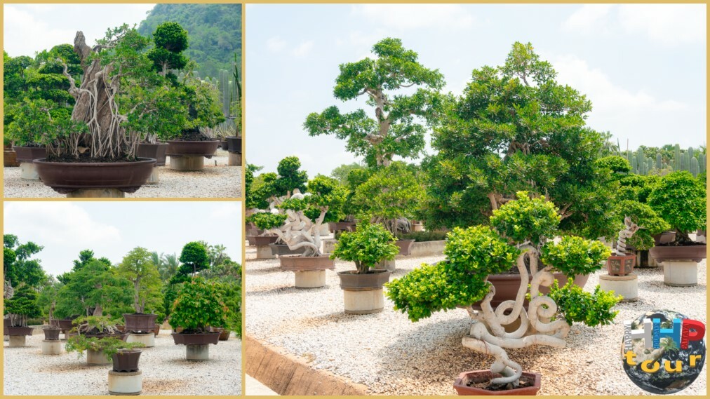 На территории представлены сотни миниатюрных деревьев разных возрастов, размеров и художественных стилей — от вековых кипарисов и оливок до молодых особей, чья форма формируется под внимательным контролем опытных садоводов.