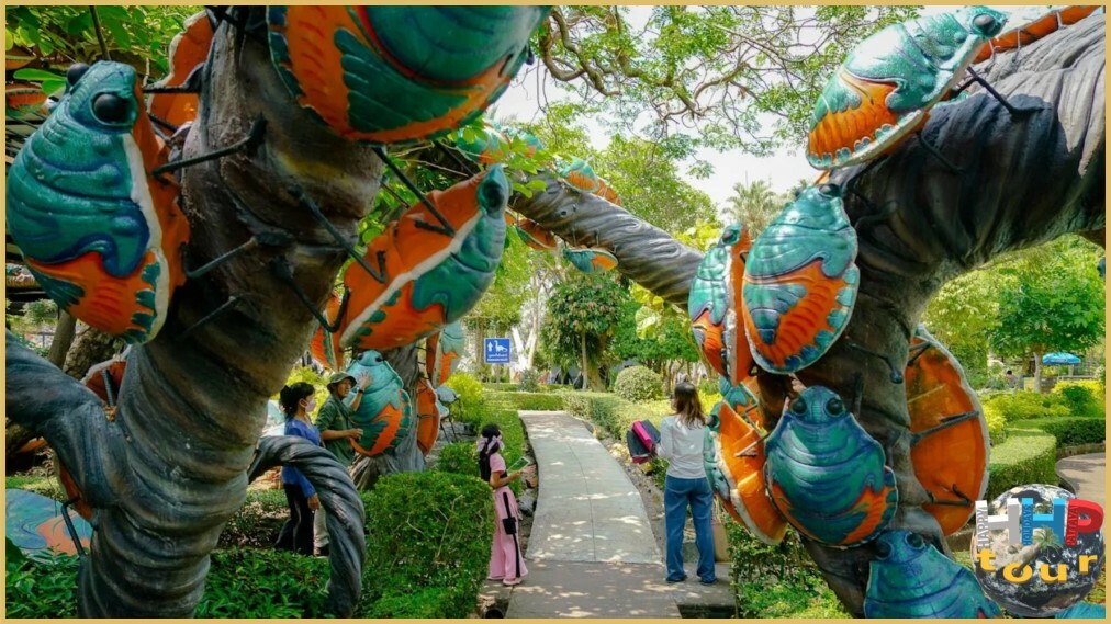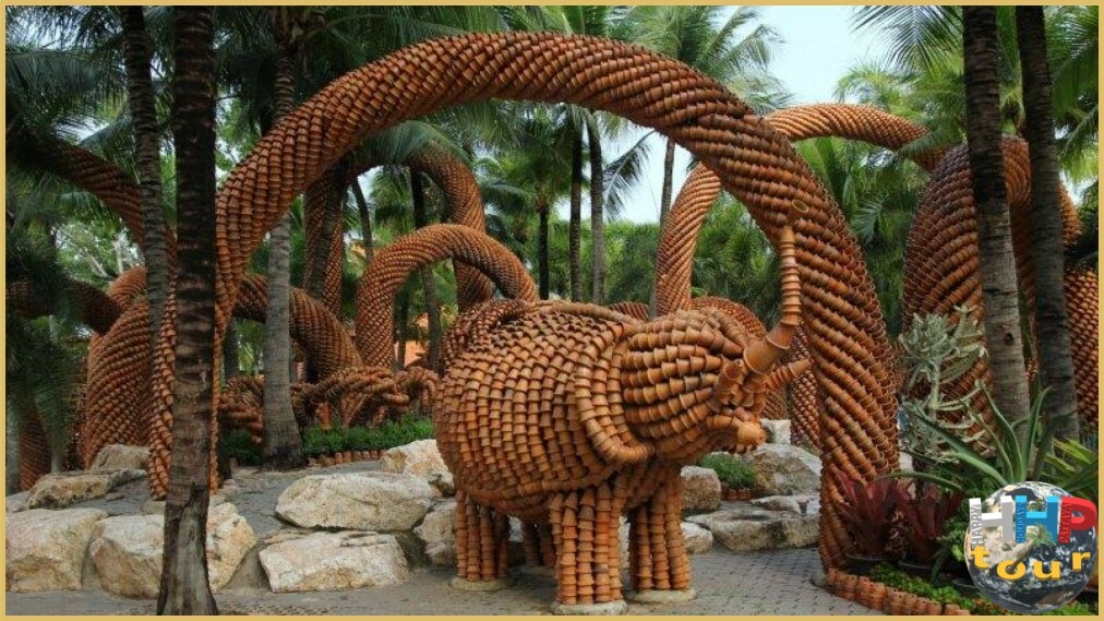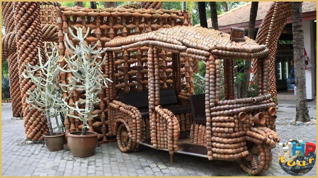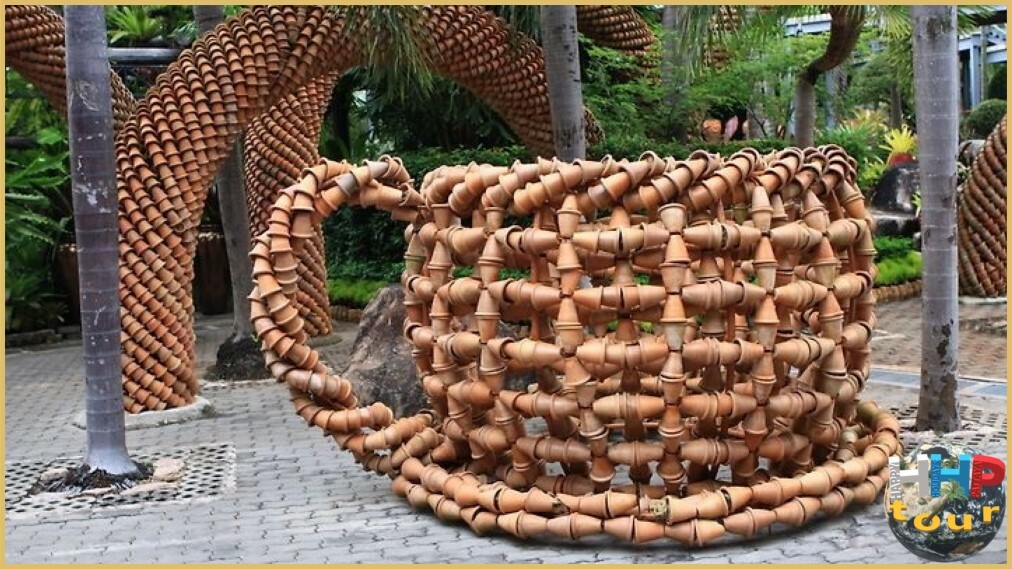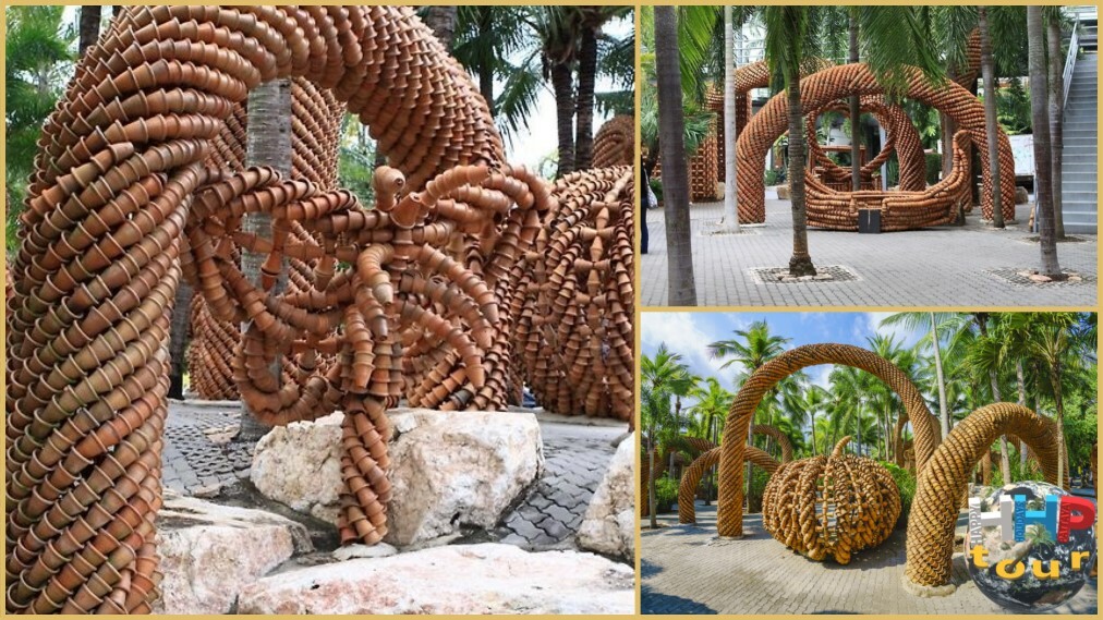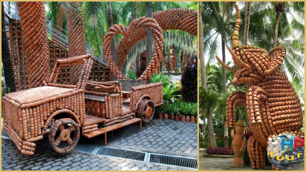 Кто мог подумать о другом использовании глиняного горшка, кроме как посадить в него растение, но нет — здесь ему нашли совершенно другое применение. У кого-то хватило фантазии присоединить к другому горшку и таким простейшим способом создать непростую фигуру в виде животного или транспорта. Эти гончарные экспозиции занимают почётное место тропического парка.
