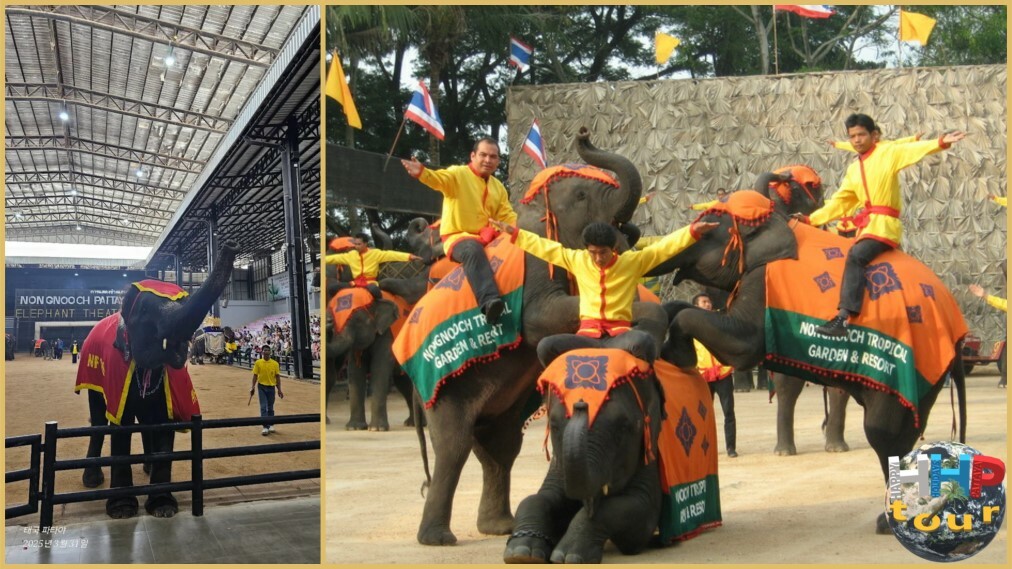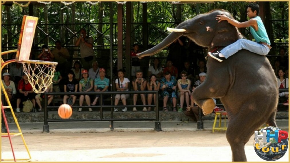 В саду проходит одно из самых выдающихся зрелищ парка — шоу слонов, признанное экспертами и туристами как образец высочайшего мастерства, согласованность людей и животных. На каждом представлении слоны демонстрируют невероятно точные движения: они выполняют акробатические трюки, перестраиваются в сложные фигуры, гоняют на великах, рисуют, метко бросают дротики в дартс — это всё с поразительной грацией и спокойствием. Такое шоу достойно вашего внимания!