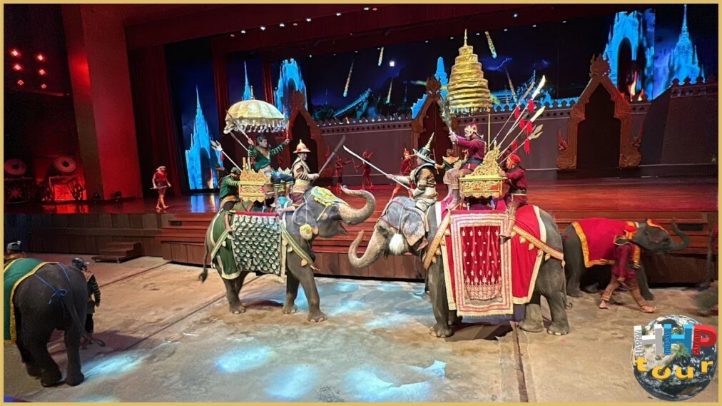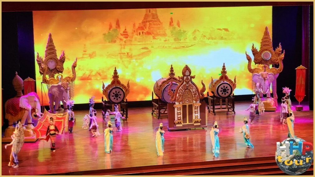 После шоу слонов следует настоящий праздник культуры — фольклорная программа, представляющая богатейшие традиции региона. На огромной сцене расцветает национальный ансамбль танцев. Участники одеты в разные костюмы, сотканные вручную из шелковых нитей и украшенные вышивкой с символикой плодородия, защиты и единства народа.