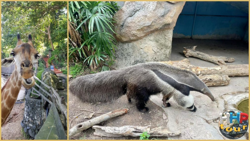 Гигантский муравьед справа и слева жираф.