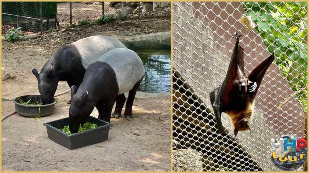 Сейшельская летучая лисица справа, слева тапиры.